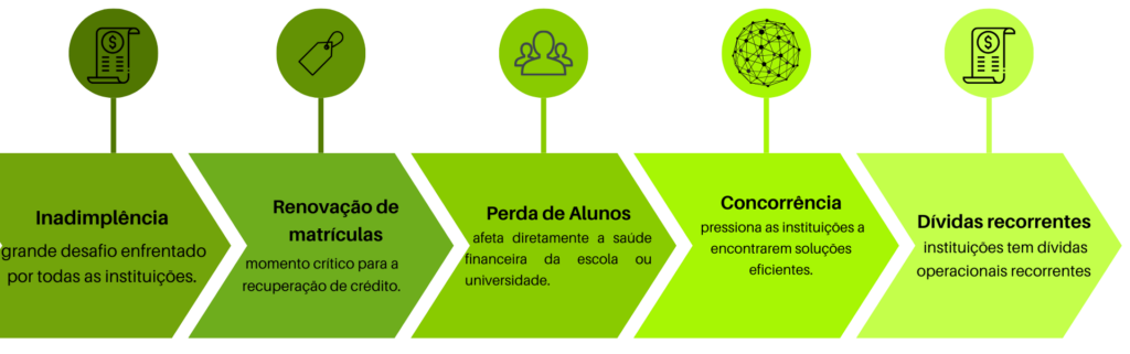 Quais são os principais desafios na recuperação de crédito para instituições de ensino?